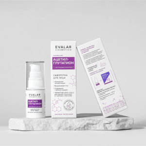 В сыворотке Evalar Cosmetics глутатион представлен в двух формах: L-глутатион и S-ацетил-L-глутатион, что обеспечивает его гарантированное проникновение в глубокие слои кожи и пролонгированное действие.