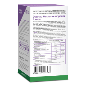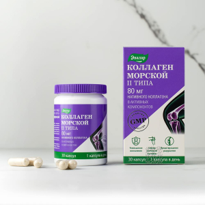Коллаген морской II типа в капсулах — инновационный продукт компании «Эвалар», который содержит нативный коллагеновый белок из глубоководного кальмара и еще семь компонентов, необходимых для поддержания здоровья и молодости суставов.