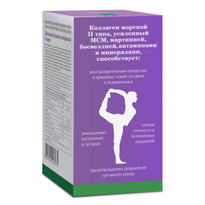 - Уникальный состав. Содержит сразу 8 активных компонентов. Помимо нативного морского коллагена, в состав добавки входят метилсульфонилметан (МСМ), витамин С, экстракты мартинии и босвеллии, глюконаты марганца и меди, холекальциферол (витамин D3). Каждый из компонентов комплекса может оказывать положительное действие на суставы, способствуя снятию отечности, уменьшению воспалительных явлений и боли, ускорению восстановления хрящевой ткани.