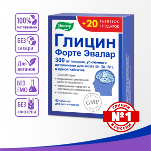 Глицин Форте Эвалар 300 мг таблетки, 60+20 шт., по 0,6г