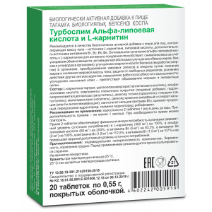 Альфа-липоевая кислота и L-карнитин, Турбослим - Биологически активная добавка (БАД). Не является лекарственным средством.