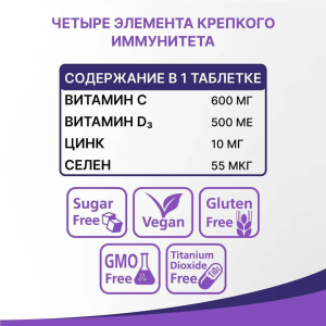 Витамин С, витамин D3 и цинк усиленные селеном в легко усваиваемой форме шипучих таблеток