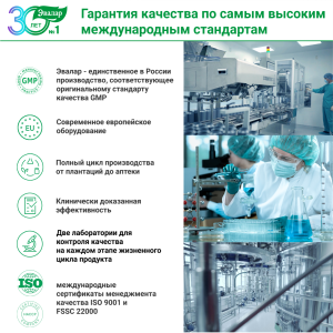 Компания «Эвалар» имеет многолетний опыт работы и выпускает продукцию в строгом соответствии с международным стандартом качества GMP Состав