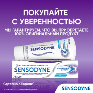 Зубная паста Sensodyne мгновенный эффект для чувствительных зубов с фтором, 75 мл