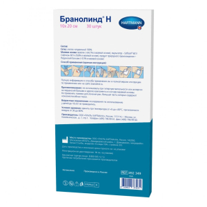 Как принимать, курс приема и дозировкаПосле вскрытия стерильной внутренней упаковки повязка Branolind N, покрытая с двух сторон защитной бумагой, вырезается в соответствии с размером раневой поверхности. После удаления одного защитного бумажного слоя повязка накладывается на рану, затем снимается второй бумажный слой. Для поглощения секретов раны компресс фиксируется стерильной впитывающей повязкой. Если нет других рекомендаций врача, Branolind N обновляется при каждой смене повязки.