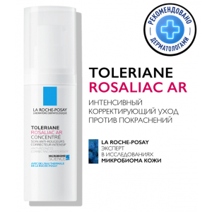 Бренд La Roche-Posay - на основе знаменитой термальной воды и создана вся косметика La Roche-Posay. Все линии косметических продуктов основаны на медицинских инновациях, и сочетаются с уникальными компонентами. Косметику La Roche-Posay разрабатывают в сотрудничестве с дерматологами. Линия Toleriane - ежедневный уход для гиперчувствительной кожи, склонной к аллергии. LA ROCHE-POSAY TOLERIANE ROSALIAC AR УХОД ДЛЯ ЛИЦА ИНТЕНСИВНЫЙ КОРРЕКТИРУЮЩИЙ ПРОТИВ ПОКРАСНЕНИЙ - для чувствительной кожи всех типов, склонной к куперозу, с временными покраснениями. Внешний вид и свойства: Кремовая текстура белого цвета Возраст: с 20 лет Мгновенно уменьшает видимость покраснений и предупреждает их повторное появление, выравнивает тон кожи, увлажняет. Уникальная формула средства с высокой концентрацией СФИНГОБИОМЫ, обогащенная термальной водой La Roche-Posay, обеспечивает высокую эффективность против покраснений. Содержит специальные пигменты, мгновенно корректирующие тон кожи и видимые покраснения. Текстура легкого крема, быстро впитывается, без жирного блеска. Увлажняет кожу, уменьшает видимые покраснения и дискомфорт. Освежающая текстура способствует уменьшению ощущения жара. Через 1 месяц* применения: кожа увлажнена, покраснения заметно уменьшены, тон кожи более ровный. Предупреждает повторное появление покраснений. *Самостоятельная оценка, 53 респондента. Клинически доказанная эффективность Баланс микробиома - невидимой экосистемы микроорганизмов на вашей коже - важен для поддержания ее здорового вида. Микробиом укрепляет кожный барьер и «тренирует» естественные механизмы защиты кожи для предотвращения чрезмерной реакции на внешние факторы. При розацеа и куперозе эти функции могут быть нарушены, что часто приводит к покраснениям, чувству покалывания, жжения или пощипывания. АКТИВНЫЕ ИНГРЕДИЕНТЫ: СФИНГОБИОМА - Экстракт бакртерий из Термальной воды La Roche-Posay, помогает поддерживать барьерную функцию микробиома кожи, снижая проявление её чувствительности НЕЙРОСЕНСИН В ВЫСОКОЙ КОНЦЕНТРАЦИИ - интенсивно успокаивает кожу, снижая её чувствительность и реактивность, Масло Карите - увлажняет, укрепляет кожный барьер Термальная вода La Roche-Posay - увлажняет, уменьшает чувство дискомфорта, защищает. Результат: коже мгновенно возвращено ощущение комфорта