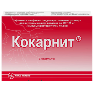 Кокарнит 187,125 мг + 2 мл лиофилизат для приготовления раствора 2 мл ампулы, 3 шт.