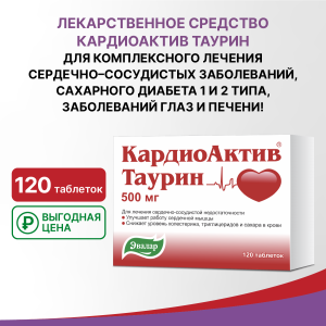 КардиоАктив Таурин Эвалар 500 мг таблетки, 120 шт.