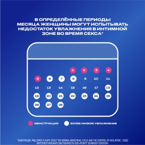 *по сравнению с гелем-смазкой Durex Play Feel РУ №ФСЗ 2009/05011. **Согласно результатам маркетингового исследования "Интимные гели, лубриканты", проведенного ООО "Тибурон" в 2016 г., количество респондентов - 305. ***Рекомендации Всемирной организации здравоохранения № WHO/RHR/12.33 от 2012 года.